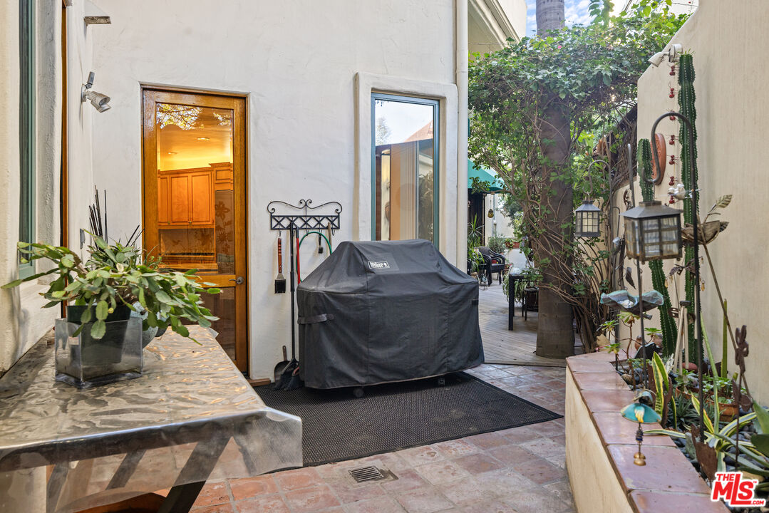 Wonderful opportunity to lease right in the heart of the Palisades while you are rebuilding! Controlled access iconic building completely remediated, freshly painted and available immediately for one or two year lease. Furniture available, but can be moved out if preferred. Terrific wrap around patio makes it feel like a real home. Two large bedrooms on separate sides of the condo, one has been used for a den/office with a Murphy bed. Primary bedroom has patio access and a large dual sink bathroom and walk-in closet. Full size washer and dryer in the unit. High ceiling living room, charming dining area, eat in kitchen with center island. Two assigned parking spaces in underground garage, accessed with clicker that opens and closes the gate. The 19 unit complex is known for its beautifully maintained courtyard with Hacienda style landscaping.